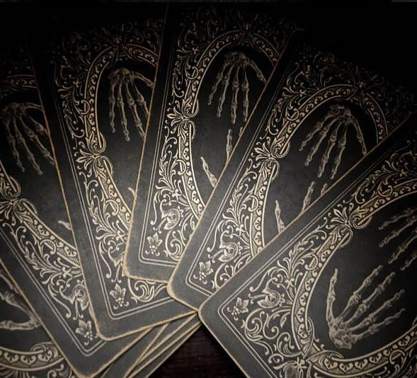 “The aging was well-done and they have a nice glide to them. The hands bring a nice feature to tie in a psychologically-visual aspect of the cards being dealt by "the h@nds of fate". For any bizarre enthusiast, this will pair nicely with any dark-themed effect, but could also play strongly for a reader who uses the major arcana only.